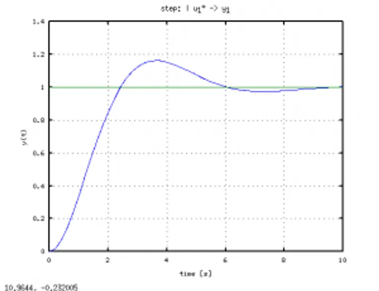 Podemos ver a continuación un ejemplo de la respuesta a escalón en un sistema de este tipo.