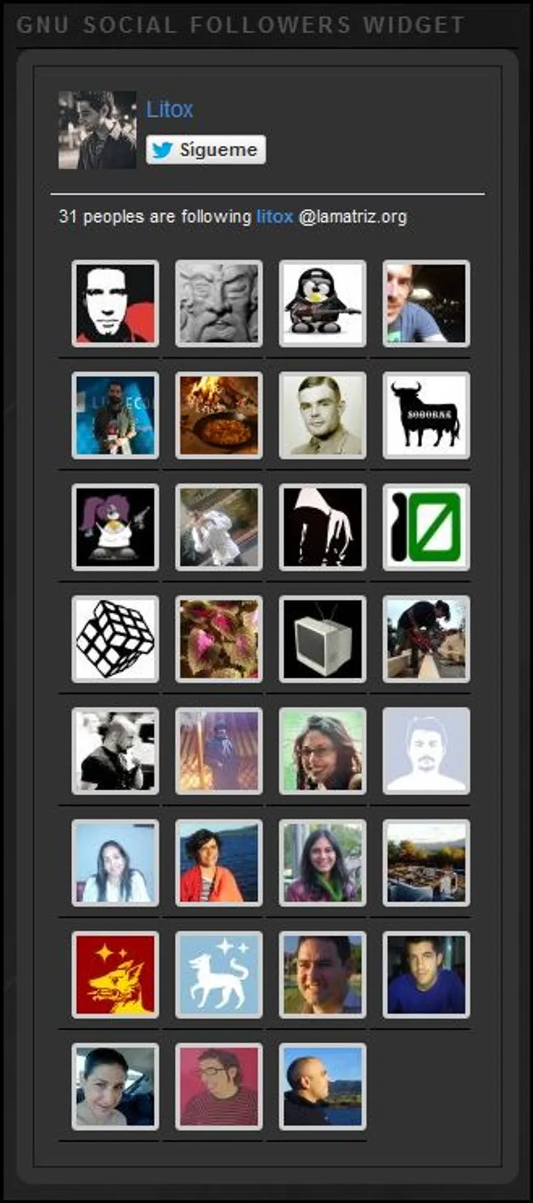 Desde el pasado sábado podéis ver en el panel de mi blog un widget con mi perfil de GNU Social, en lamatriz.org y los seguidores que tengo allí. Se trata de un widget para Wordpress que he desarrollado a partir de un plugin similar para Twitter.